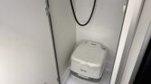 Distribución interior: Cocina equipada, cama convertible, ducha separada, WC portátil, zona de comedor con asientos giratorios